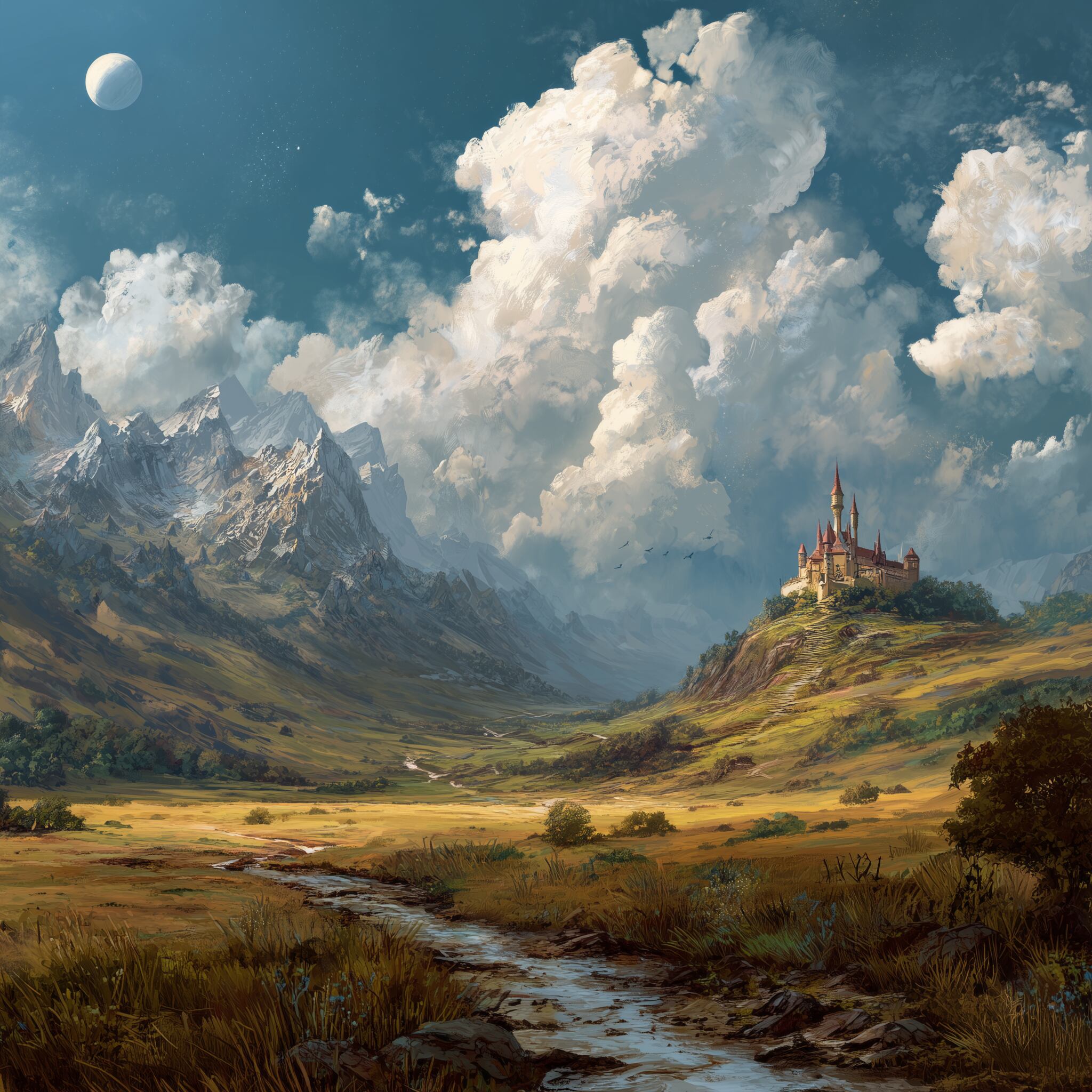 月の見守る穏やかな谷の景色は、